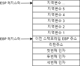 함수 호출 시 ESP, EBP 레지스터와 스택 프레임 본문