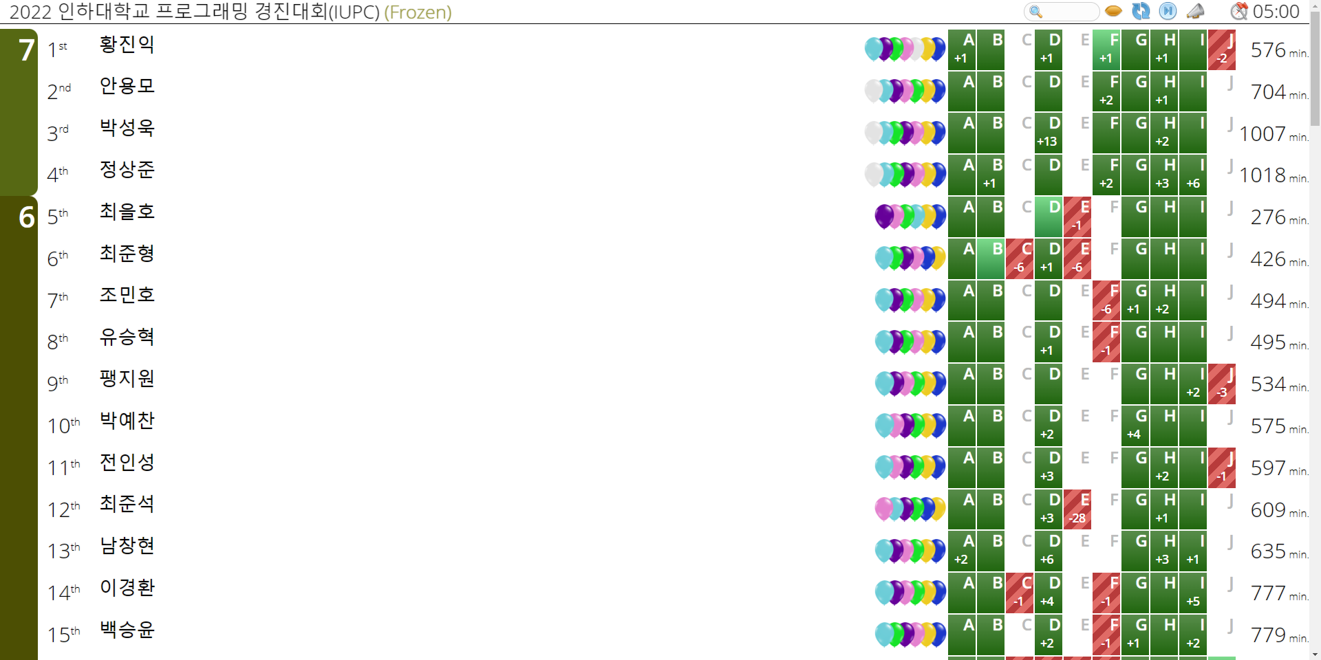 2022 인하대 프로그래밍 경진대회 IUPC 후기 본문