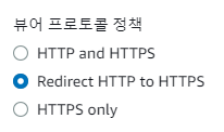 HTTP 로 Web 서버에 접속하게 된다면 HTTPS 로 Redirect 해야 하므로 Redirect HTTP to HTTPS 를 선택하자.